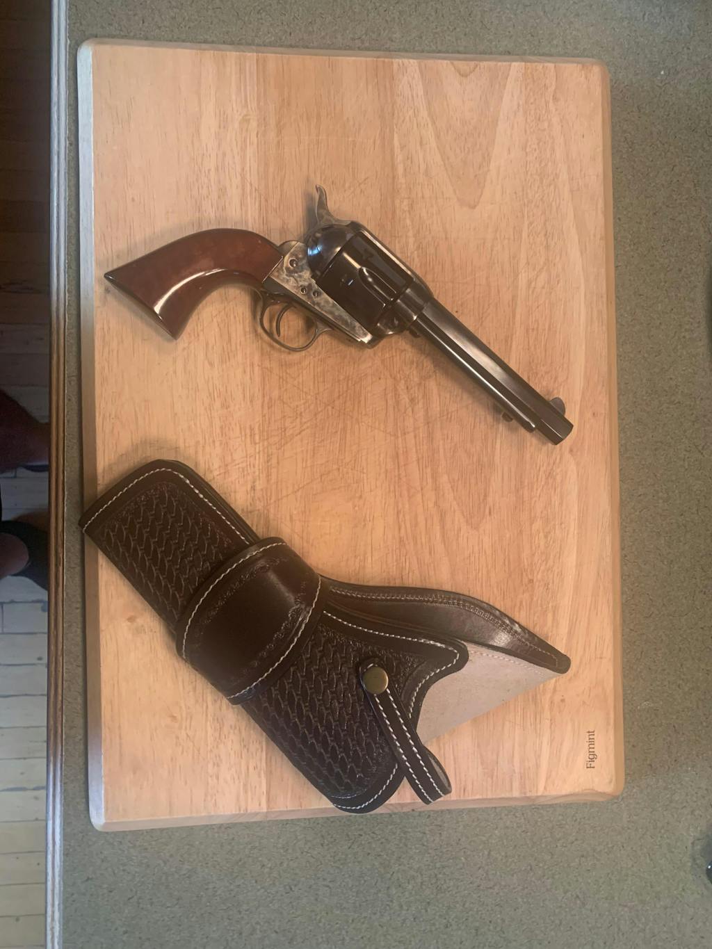 I found this Holster from Saddle Online. It would be perfect for my 1873 Taylor & Co Cattleman, 357 /38, shoots like a dream. I purchased a new holster, my firearm fits like a glove, It’s really nice. If your into it, these are perfect. Highly Recommended