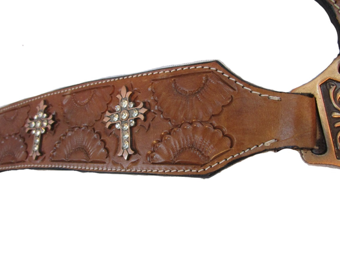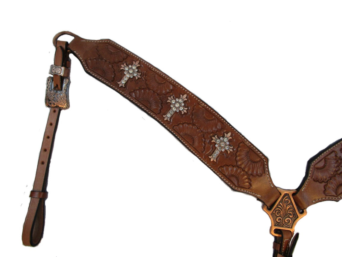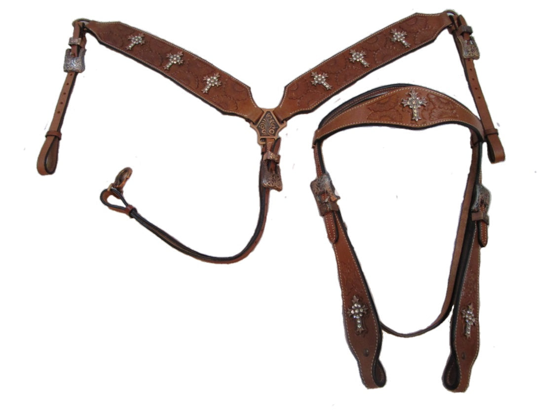 Juego de collar de pecho con cabeza occidental, barril de rastro con tachuelas cruzadas de cobre