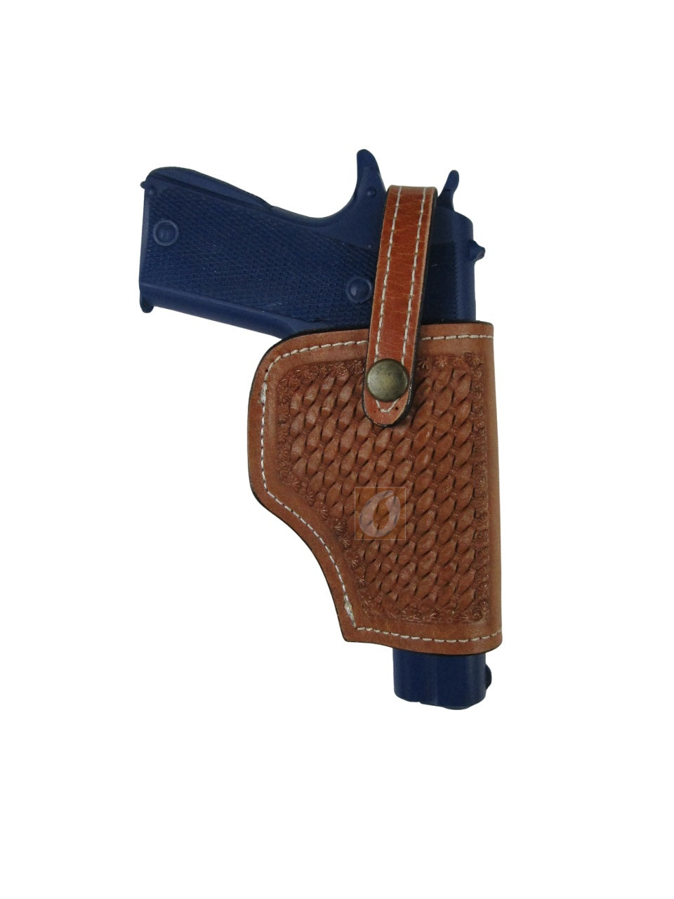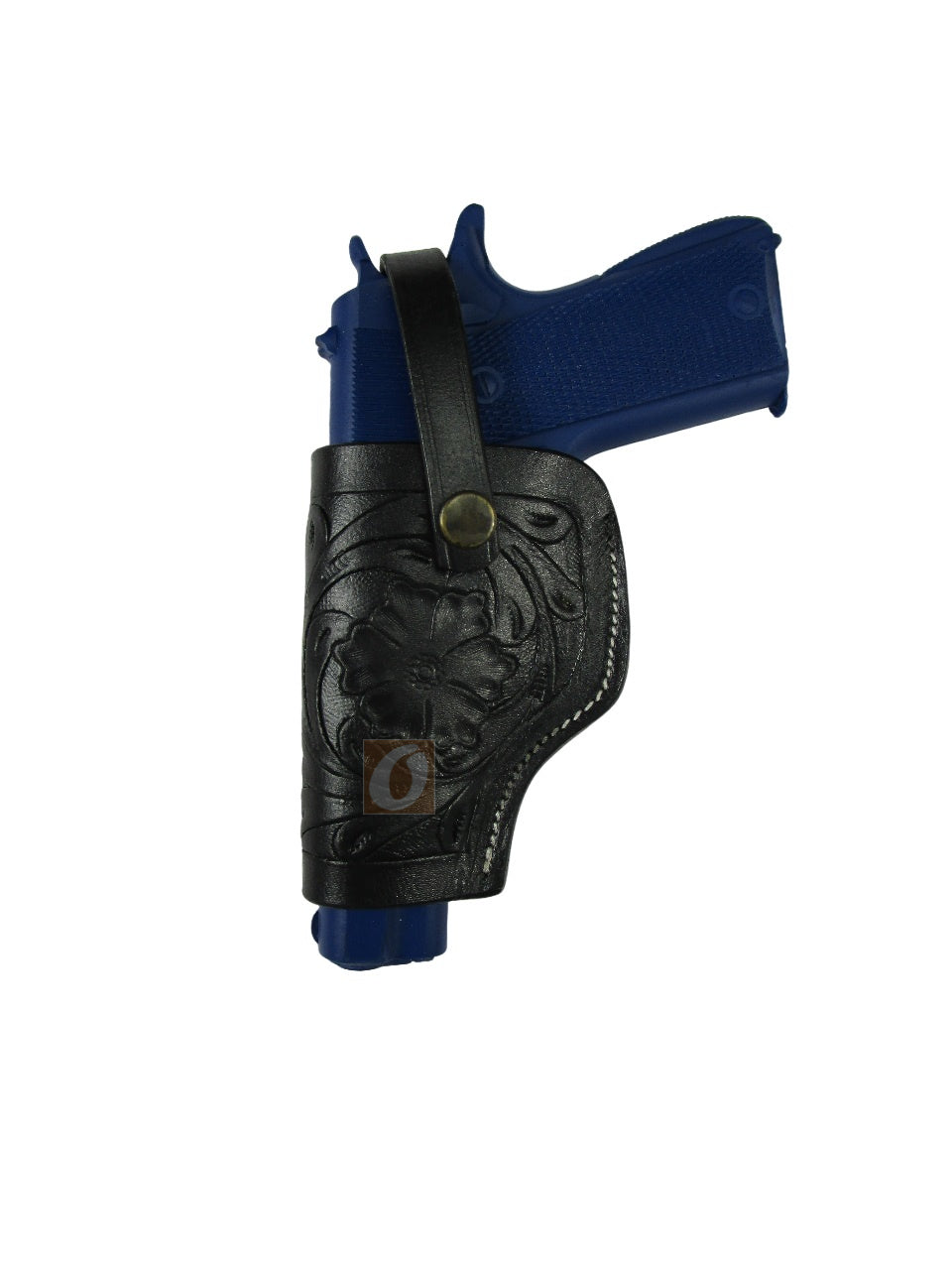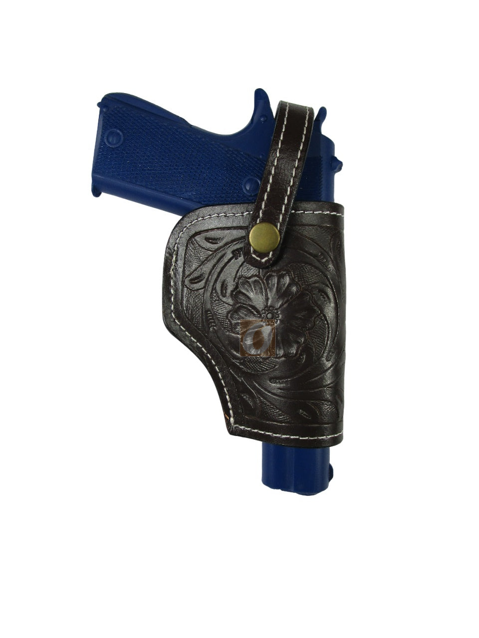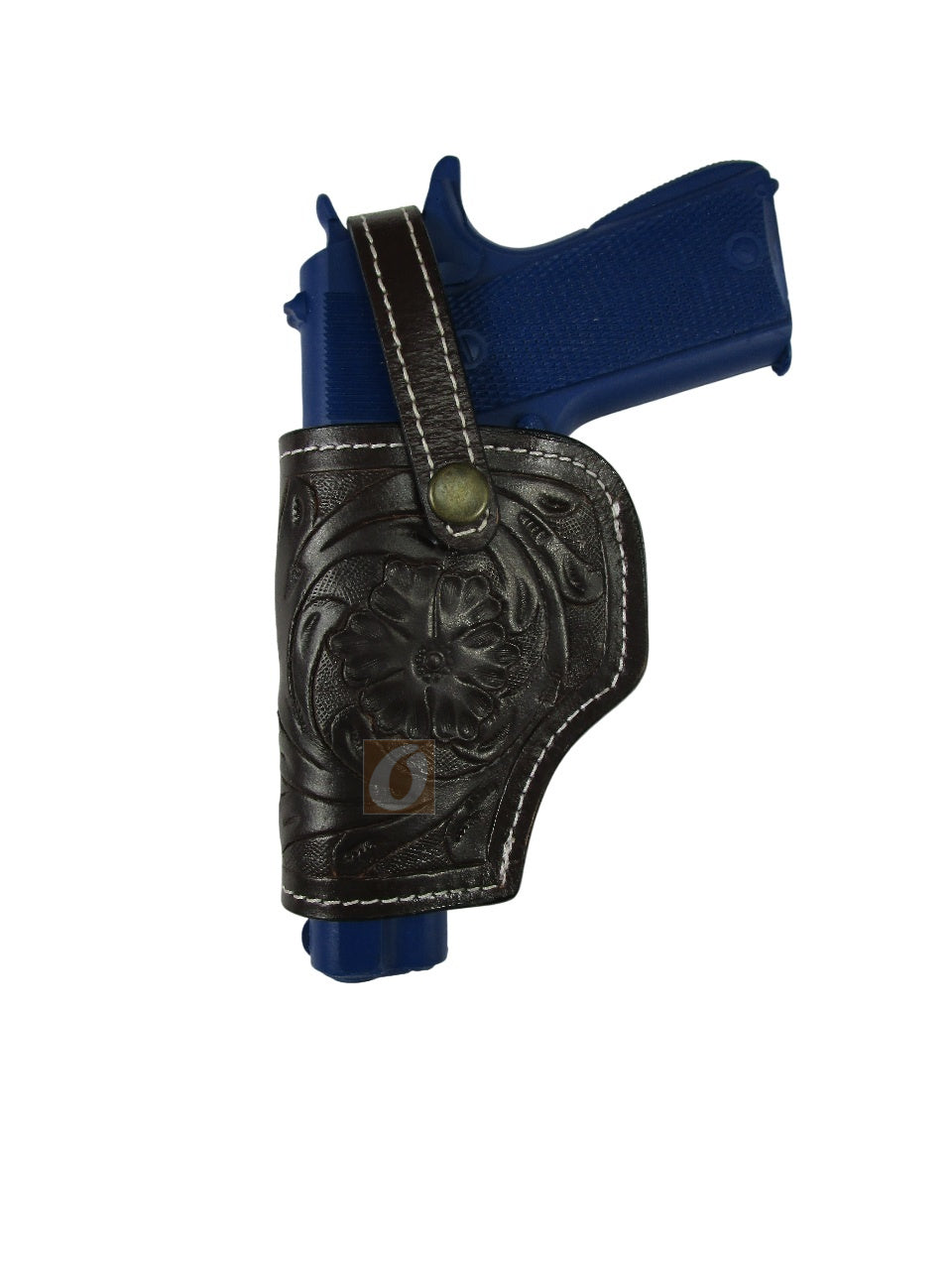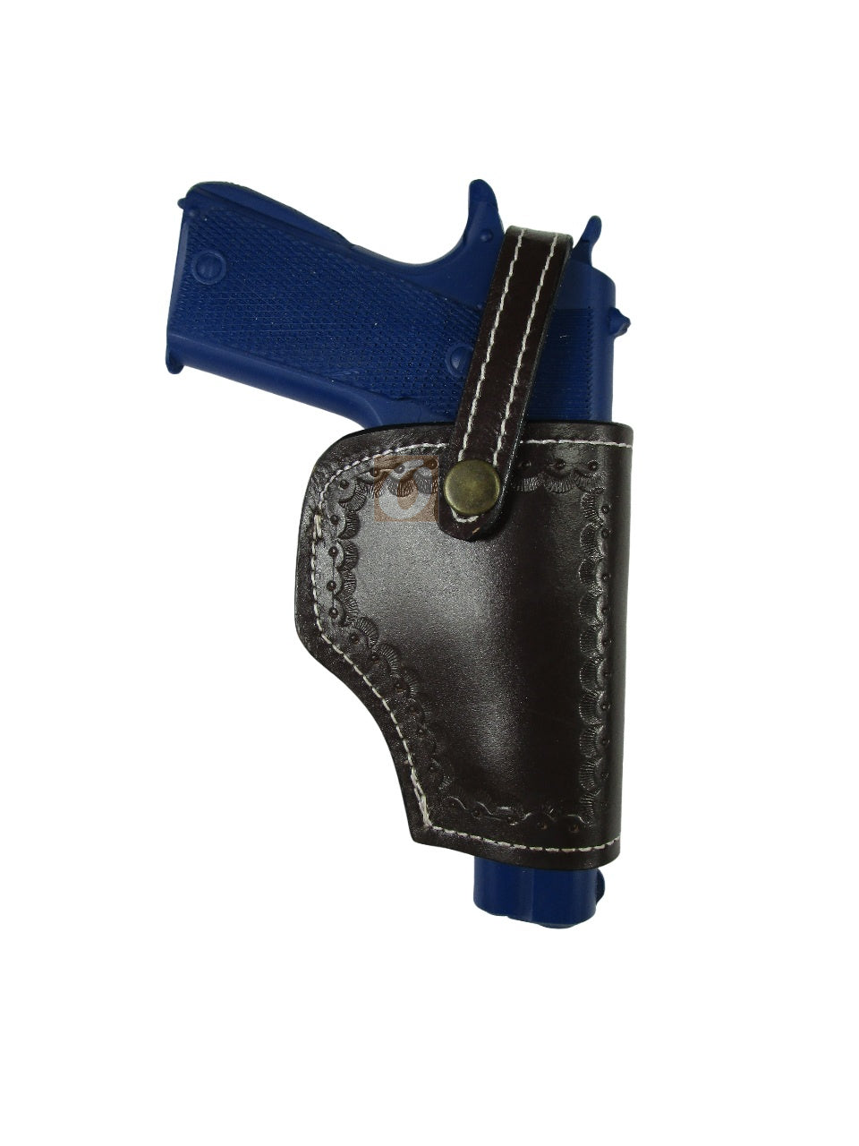 This leather holster is designed to fit standard 1911 | Each gun holster is wet-formed for a snug fit and hand-tooled , hand-rubbed for smooth edges , craftsmanship you can feel.