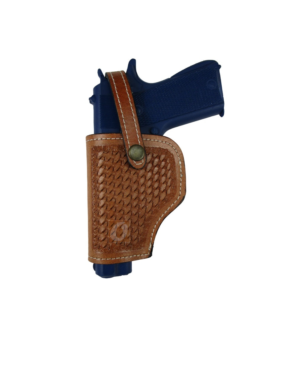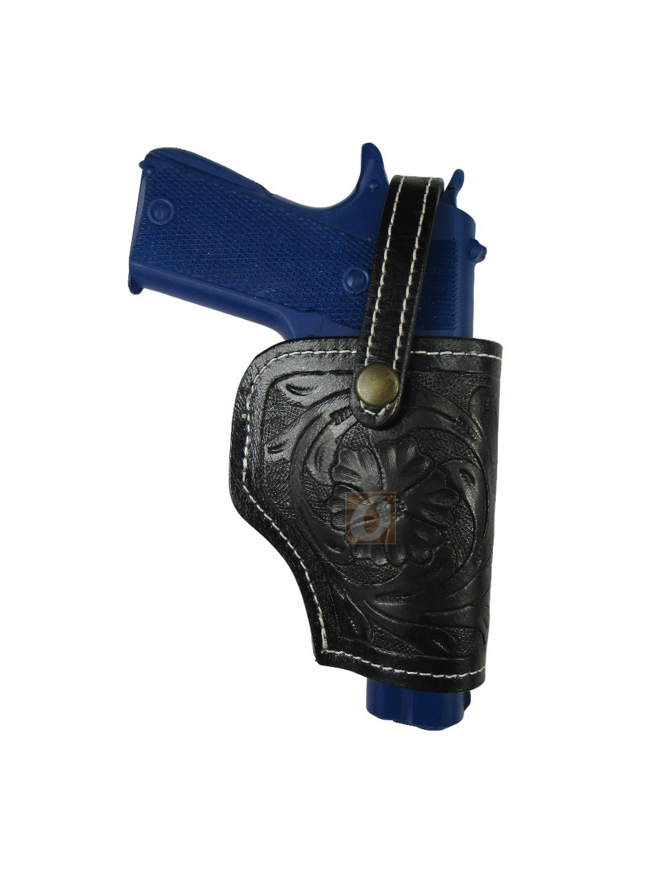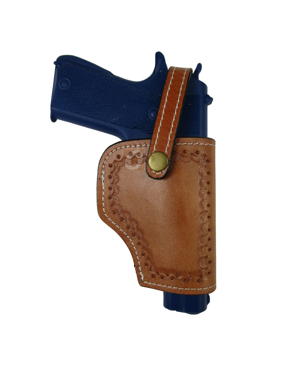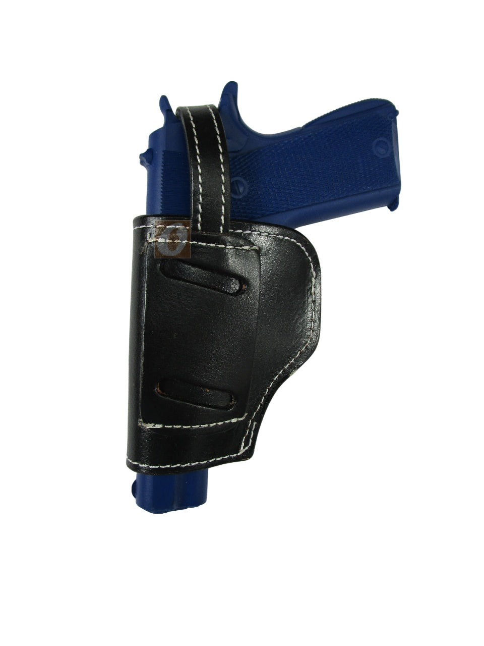 This leather holster is designed to fit standard 1911 | Each gun holster is wet-formed for a snug fit and hand-tooled , hand-rubbed for smooth edges , craftsmanship you can feel.