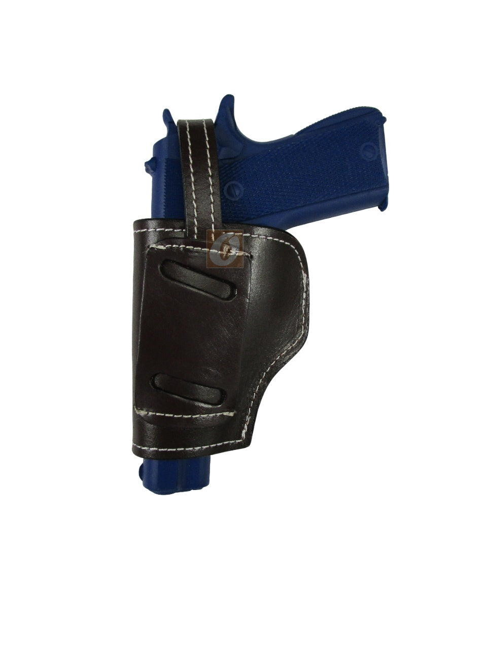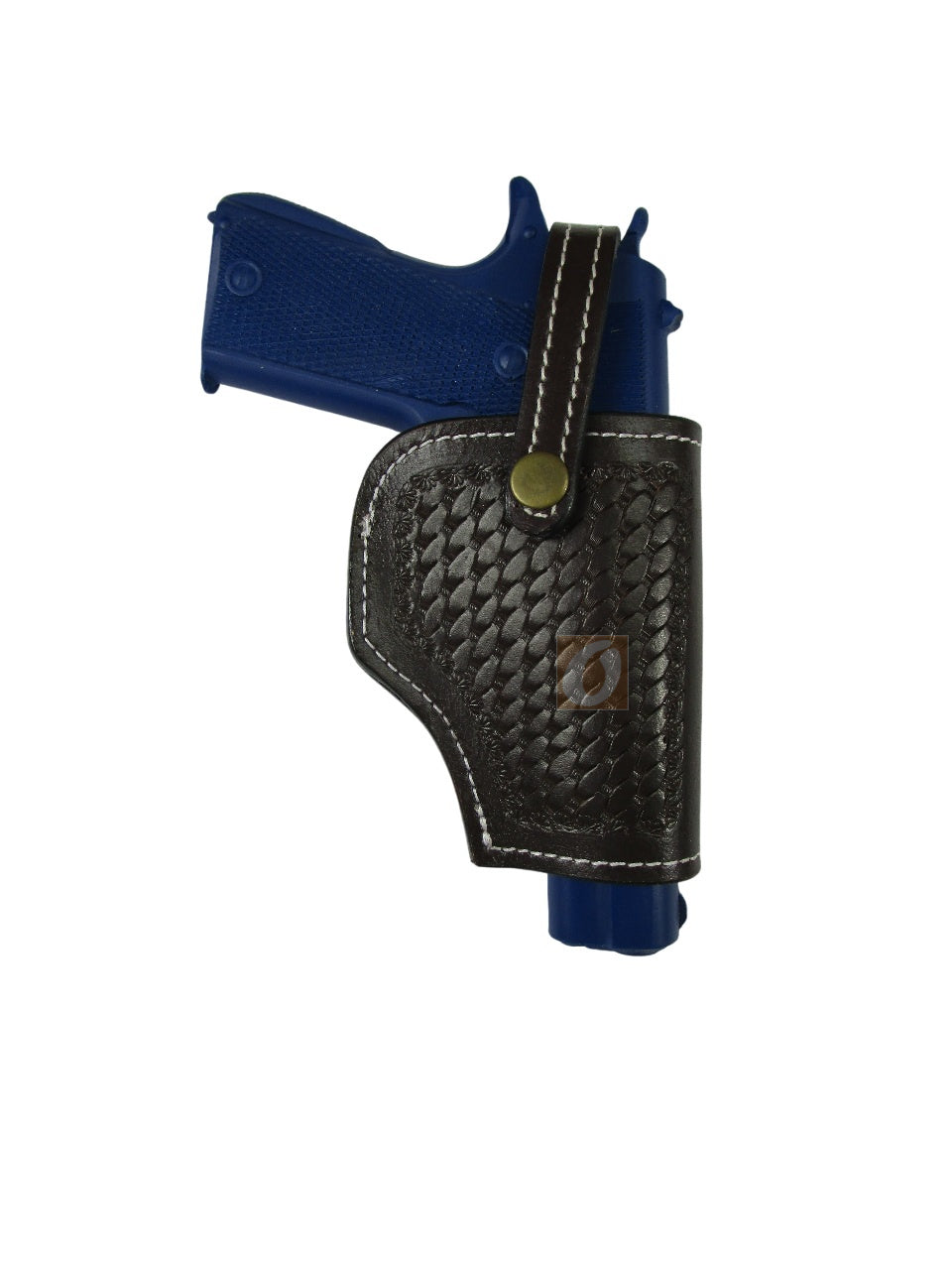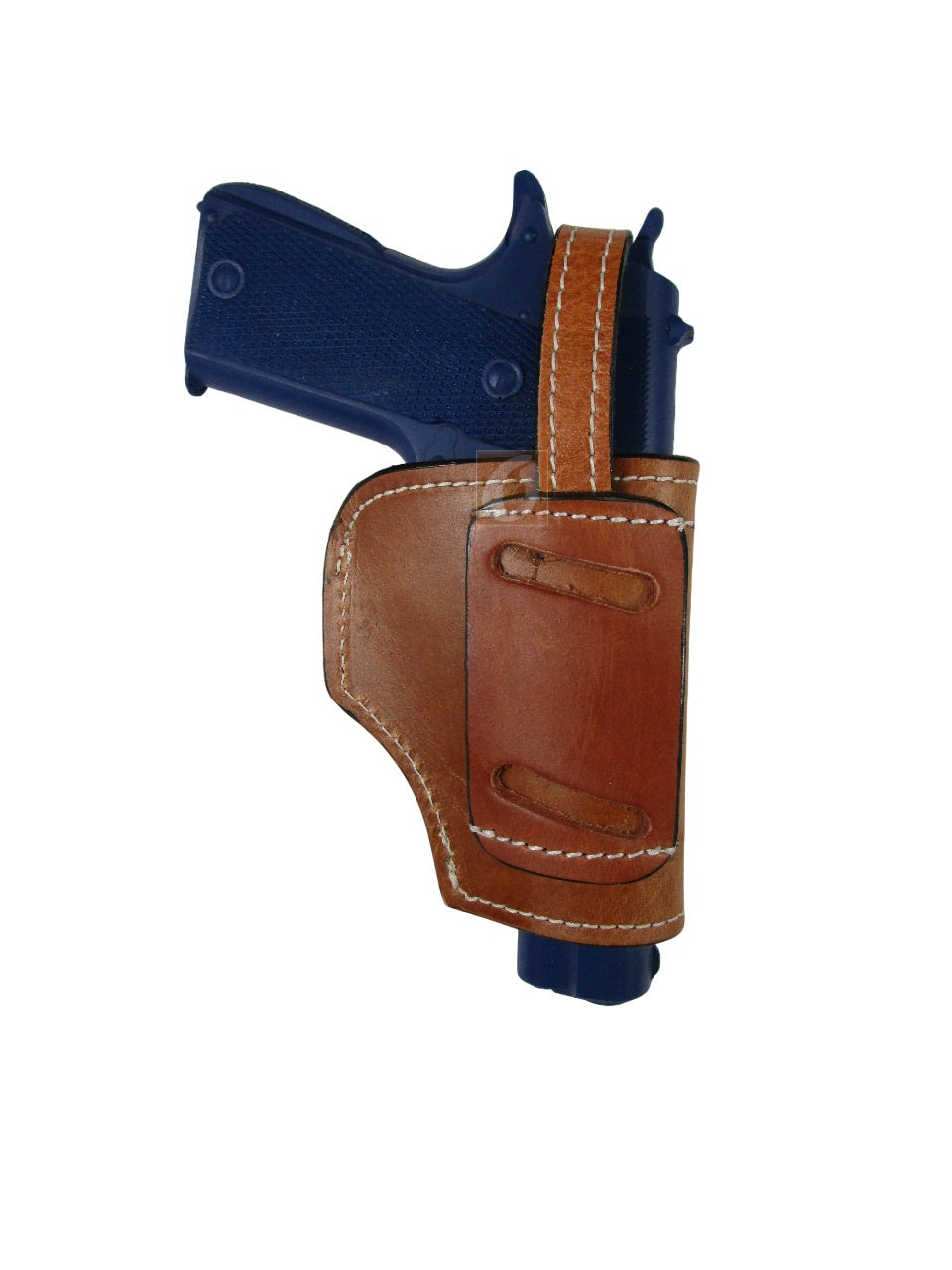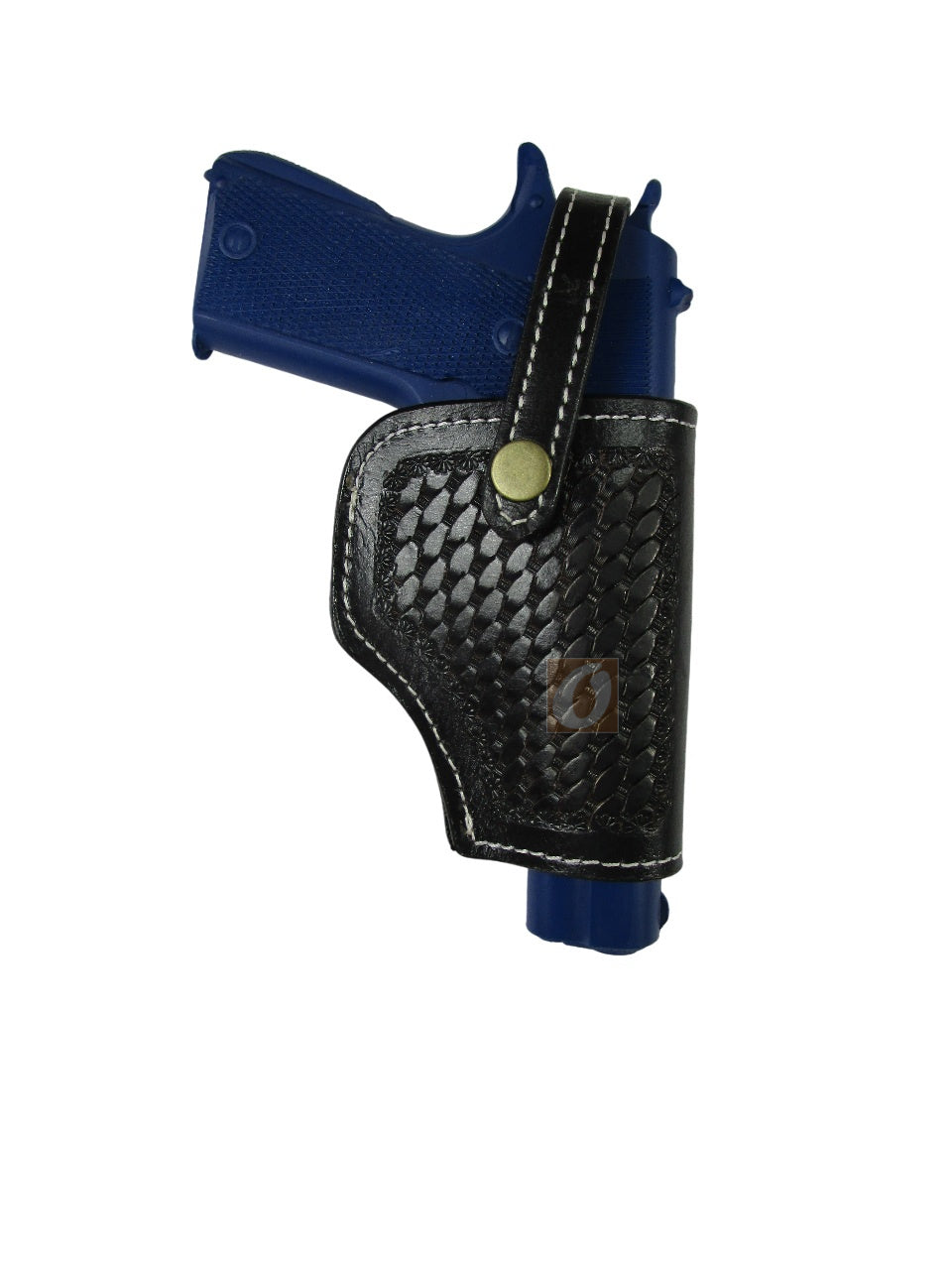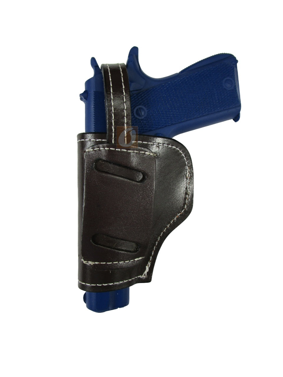 This leather holster is designed to fit standard 1911 | Each gun holster is wet-formed for a snug fit and hand-tooled , hand-rubbed for smooth edges , craftsmanship you can feel.