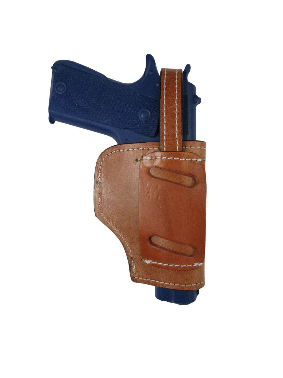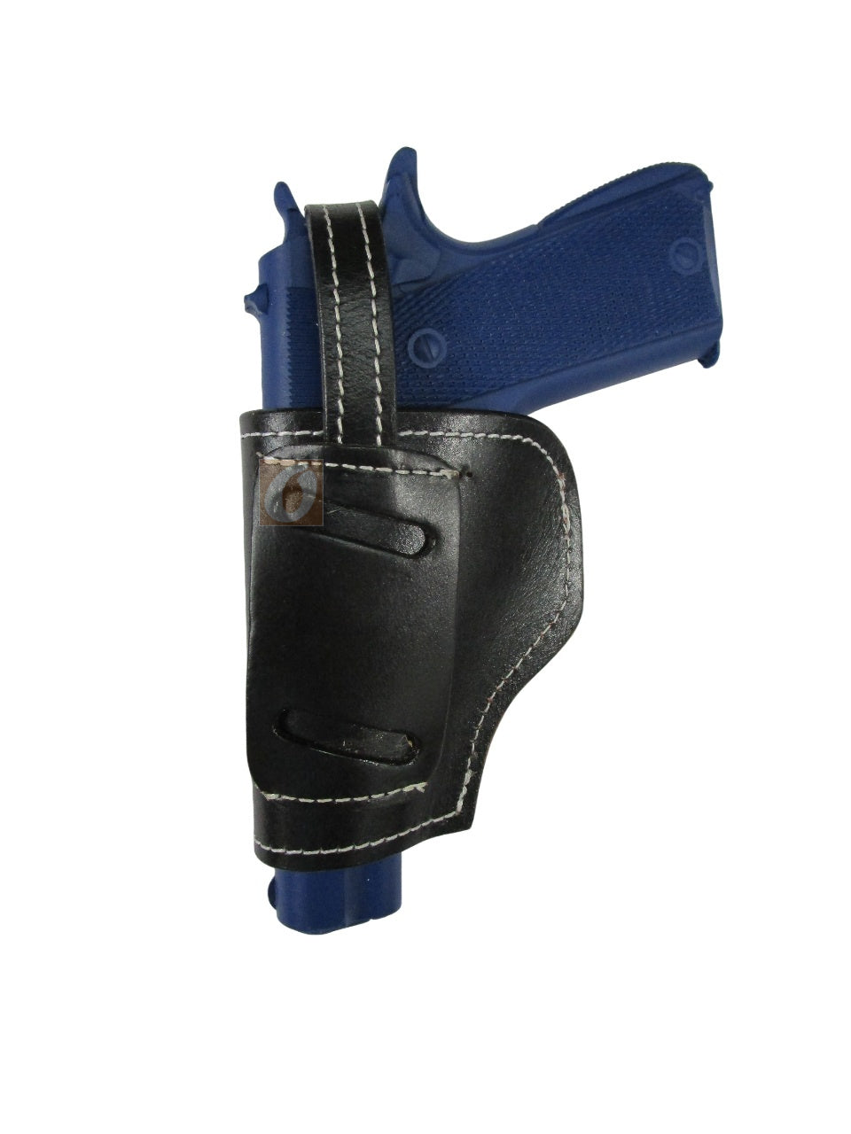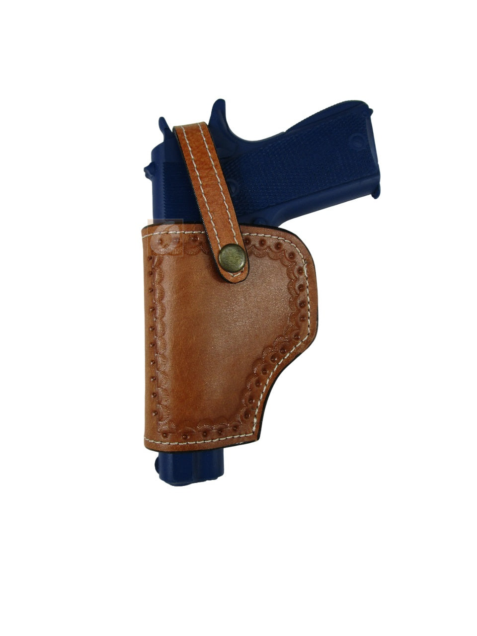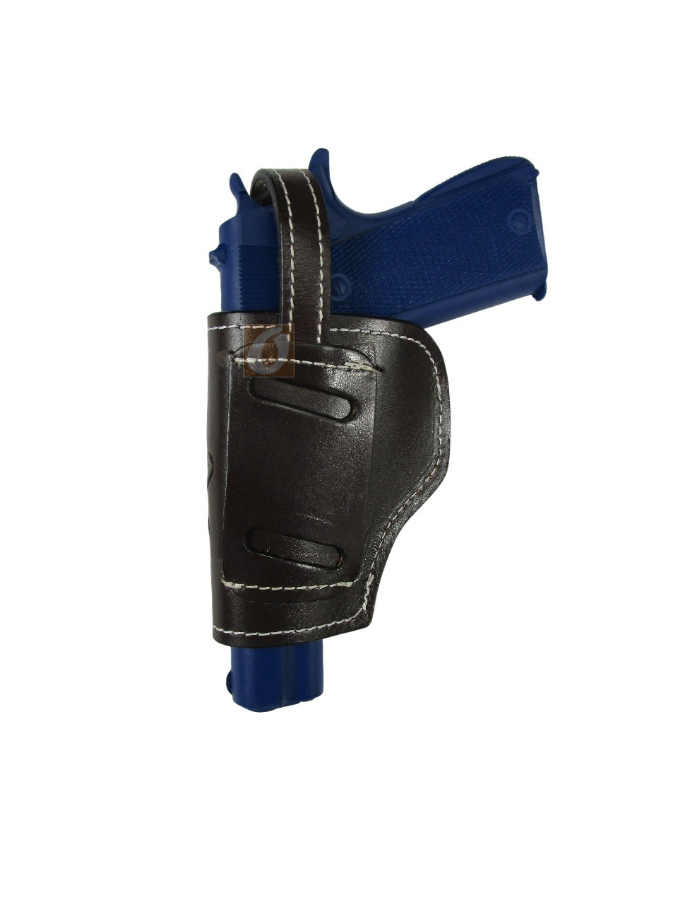 This leather holster is designed to fit standard 1911 | Each gun holster is wet-formed for a snug fit and hand-tooled , hand-rubbed for smooth edges , craftsmanship you can feel.