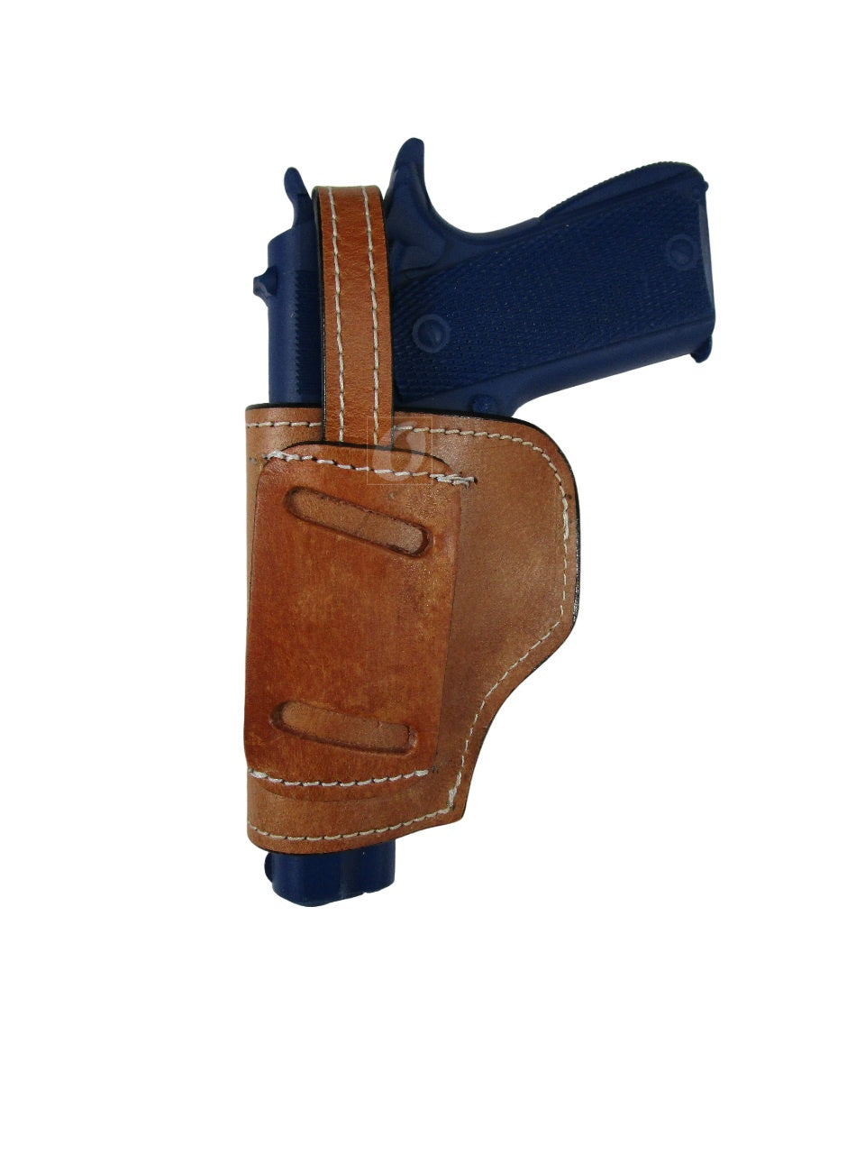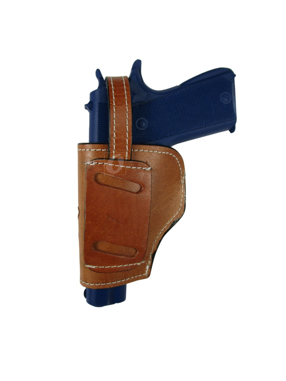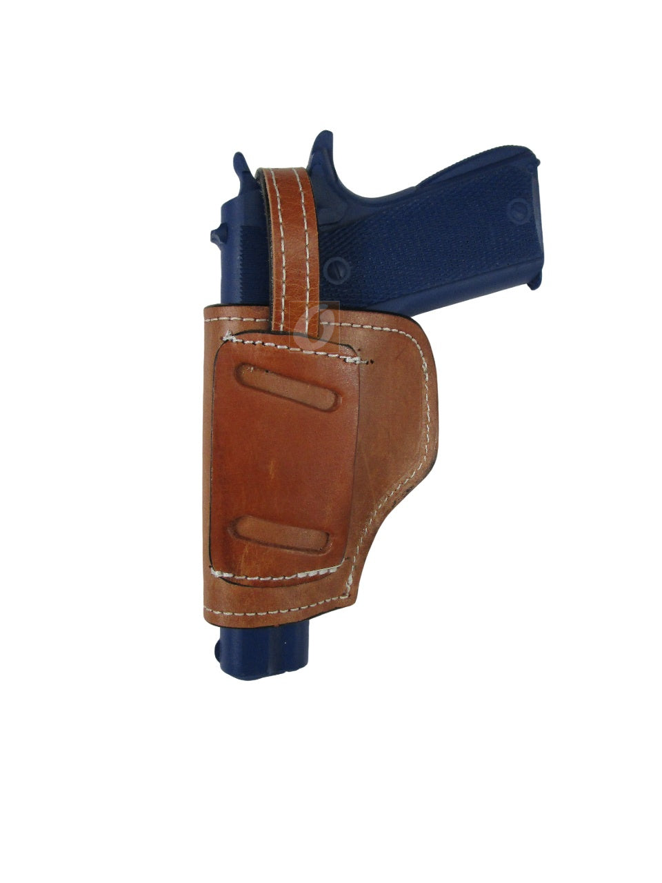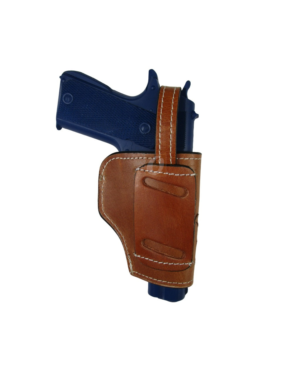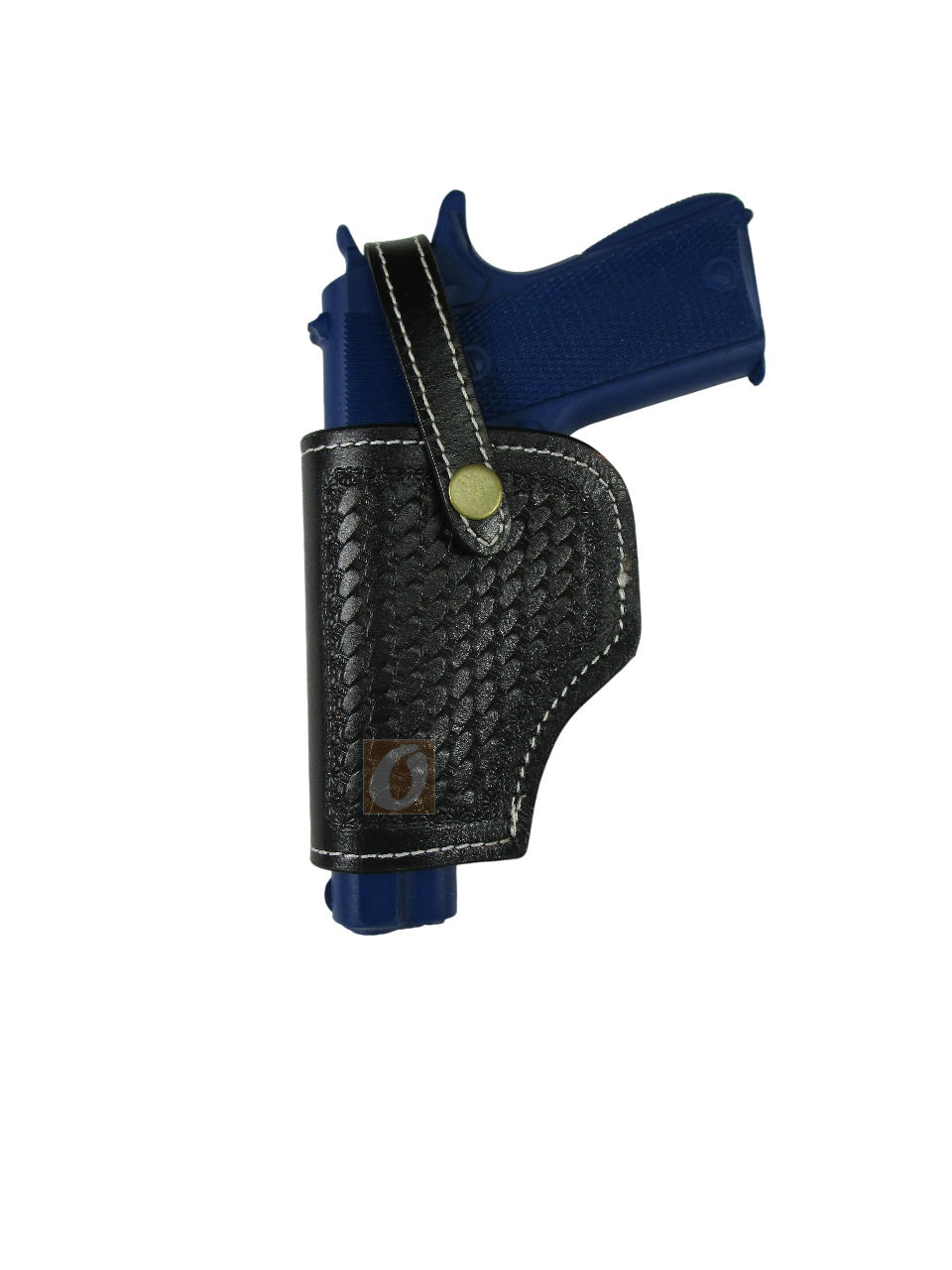 This leather holster is designed to fit standard 1911 | Each gun holster is wet-formed for a snug fit and hand-tooled , hand-rubbed for smooth edges , craftsmanship you can feel.
