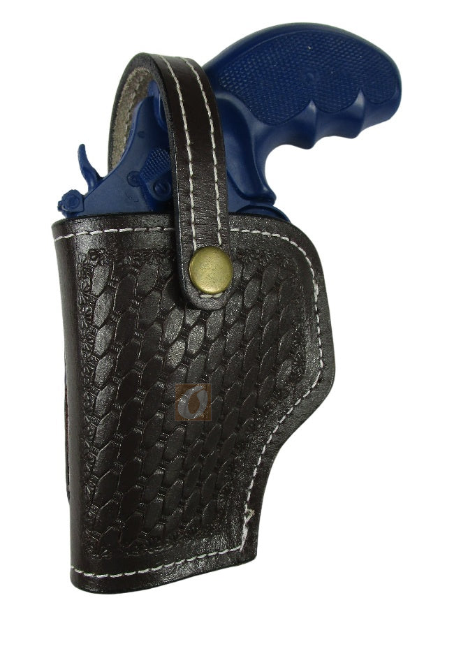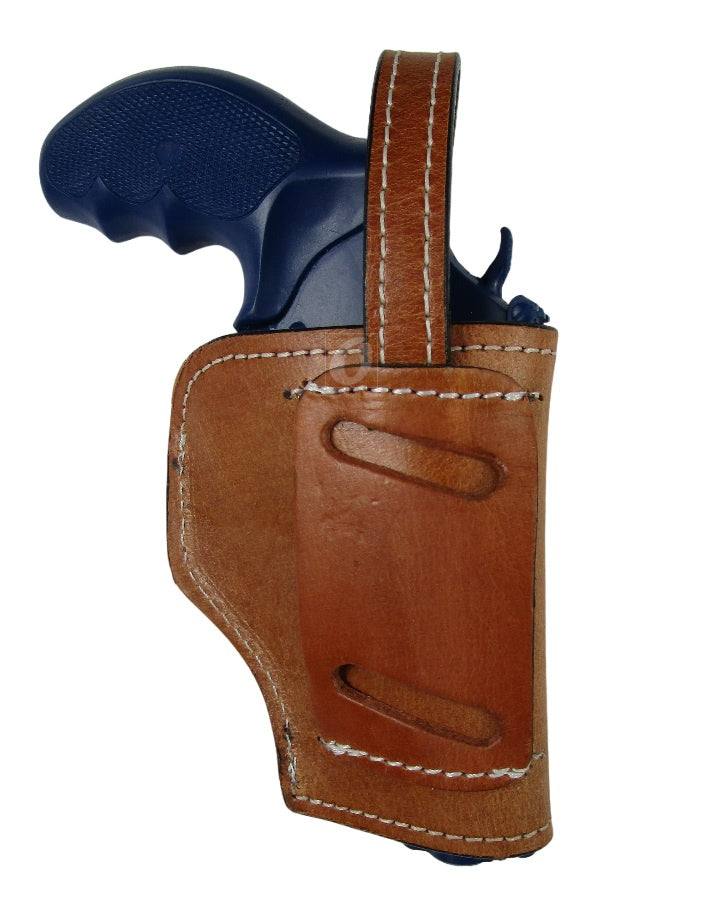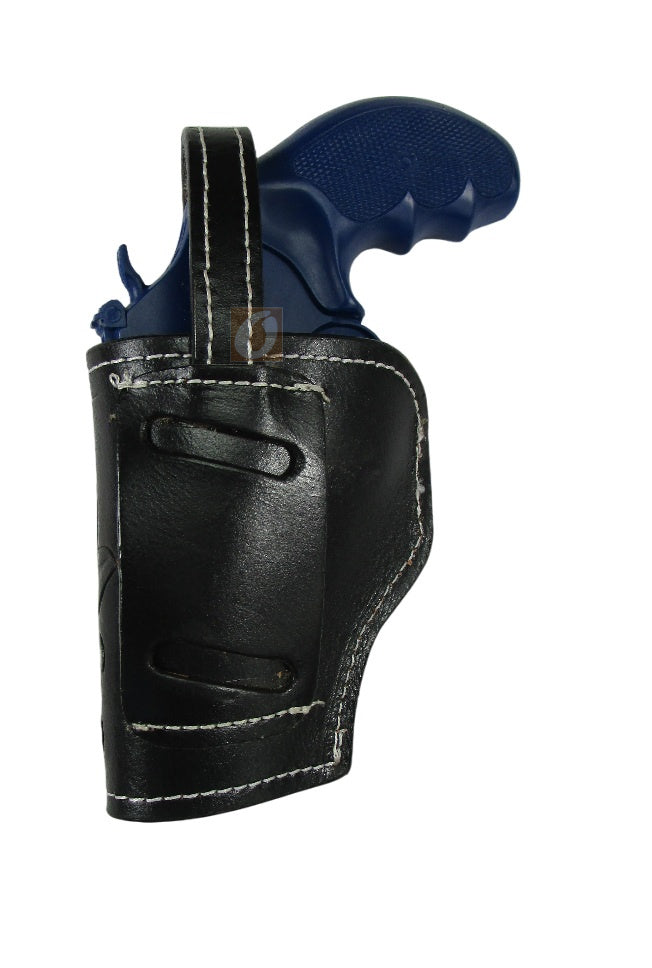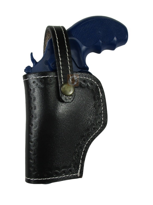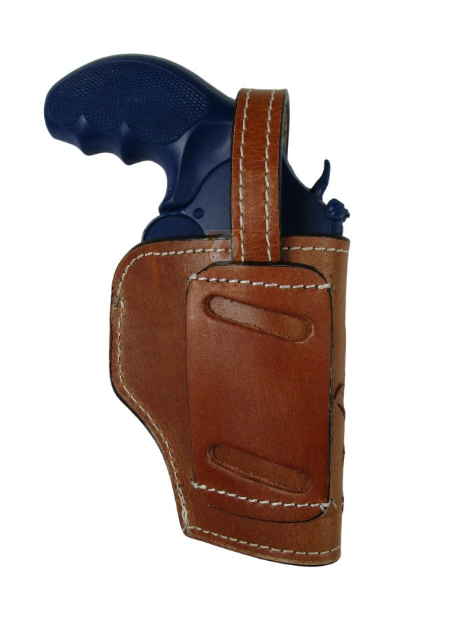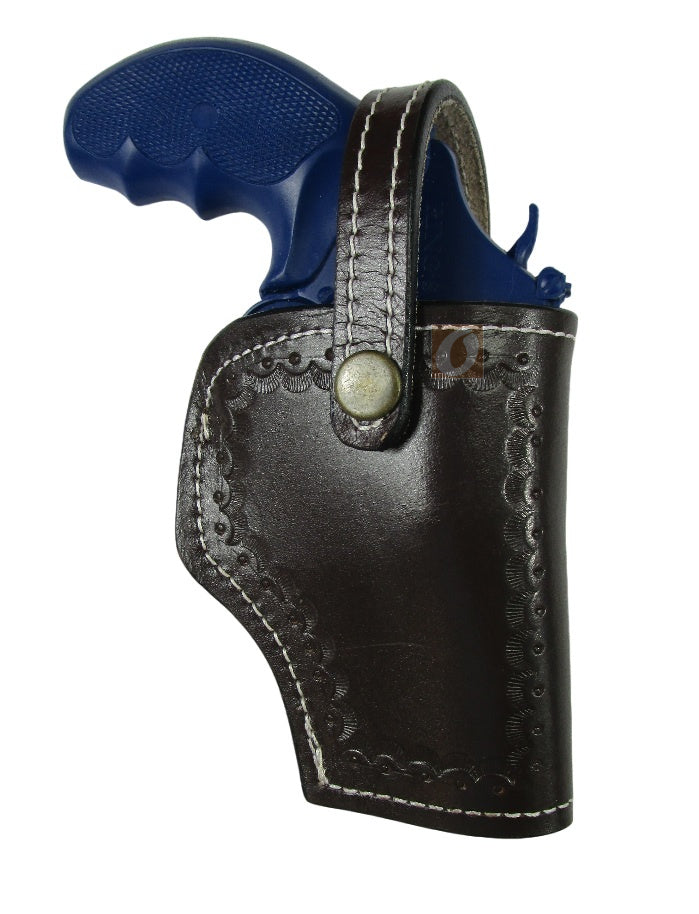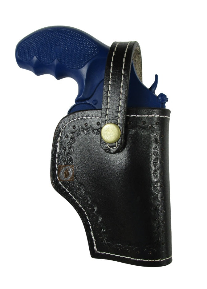This genuine leather holster is designed to fit S&W Model 60 (3-inch), .357 Magnum, and .410/.45 Colt revolvers. | Each gun holster is wet-formed for a snug fit and hand-tooled , hand-rubbed for smooth edges—craftsmanship you can feel.