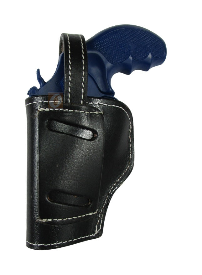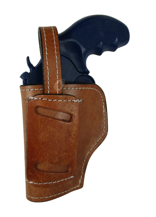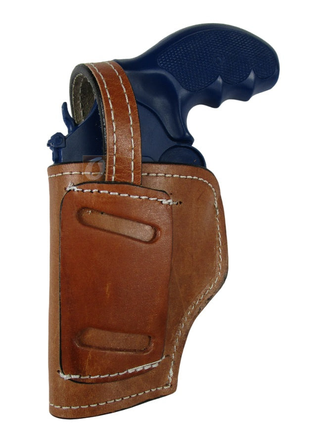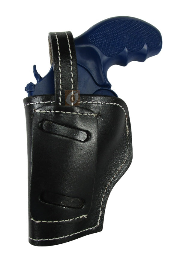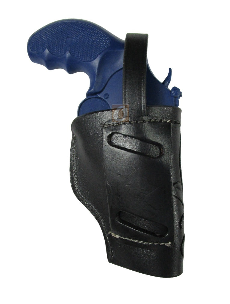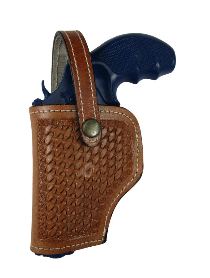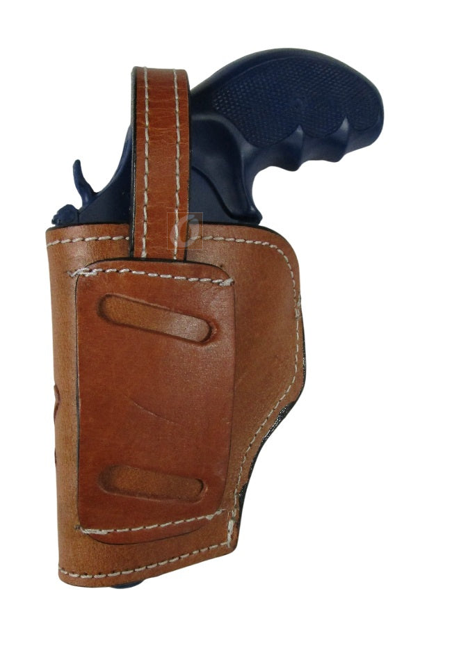 This genuine leather holster is designed to fit S&W Model 60 (3-inch), .357 Magnum, and .410/.45 Colt revolvers. | Each gun holster is wet-formed for a snug fit and hand-tooled , hand-rubbed for smooth edges—craftsmanship you can feel.