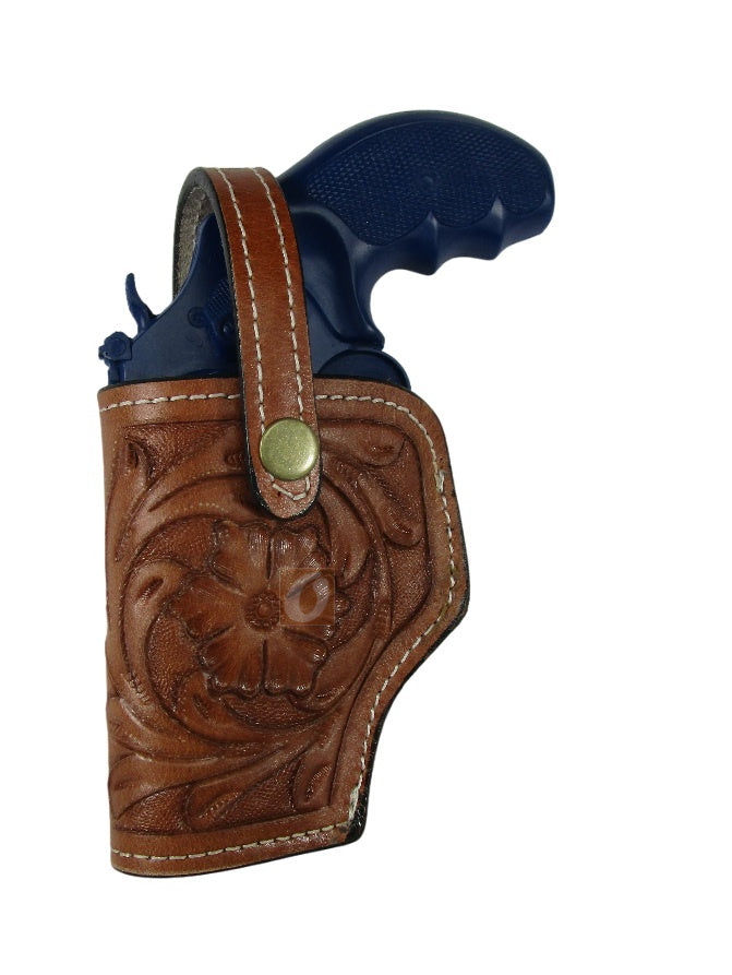 .357 Magnum Leather Holster – OWB, 3" Barrel Fit, Hand-Tooled Designs