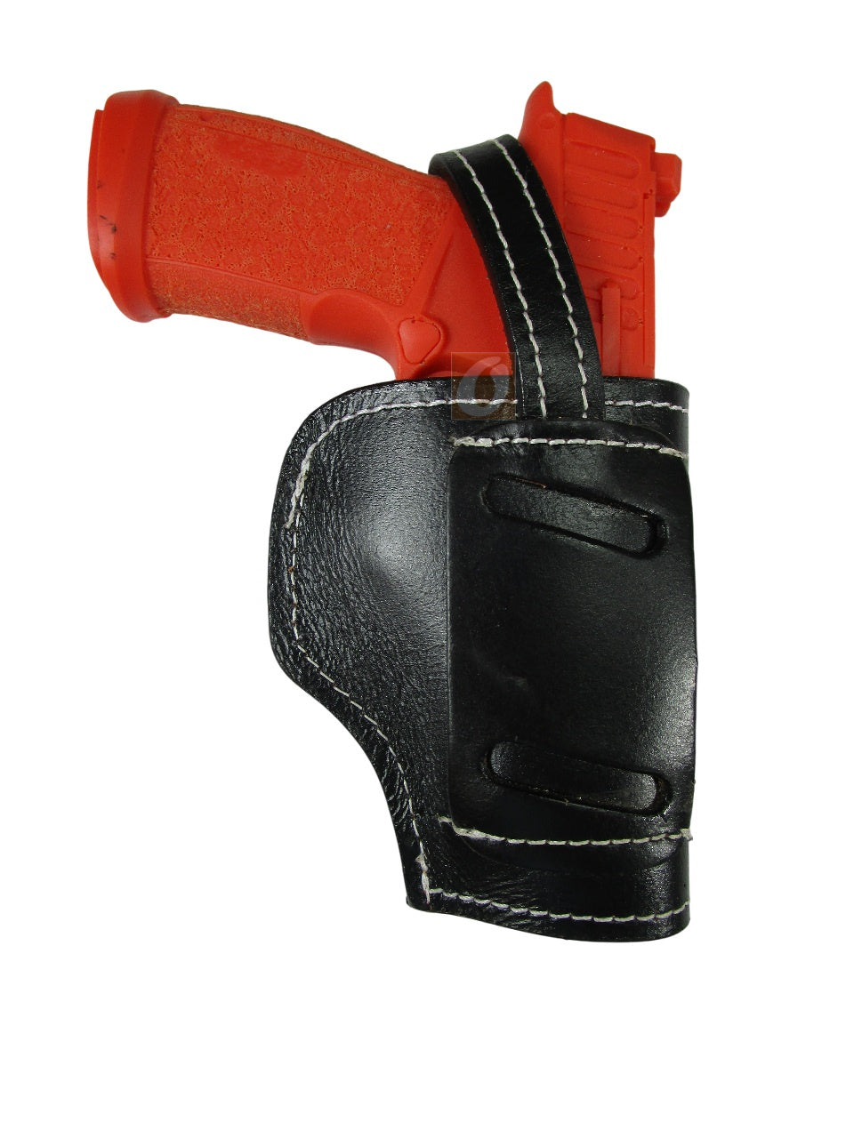 The snap retention strap provides secure lockup while keeping the draw smooth and instinctive. With an ambidextrous carry design, it works equally well for right- or left-handed users. The open-bottom cut fits threaded barrels or longer slides without drag, and the 4.5-inch length keeps the holster compact and balanced for daily wear.
