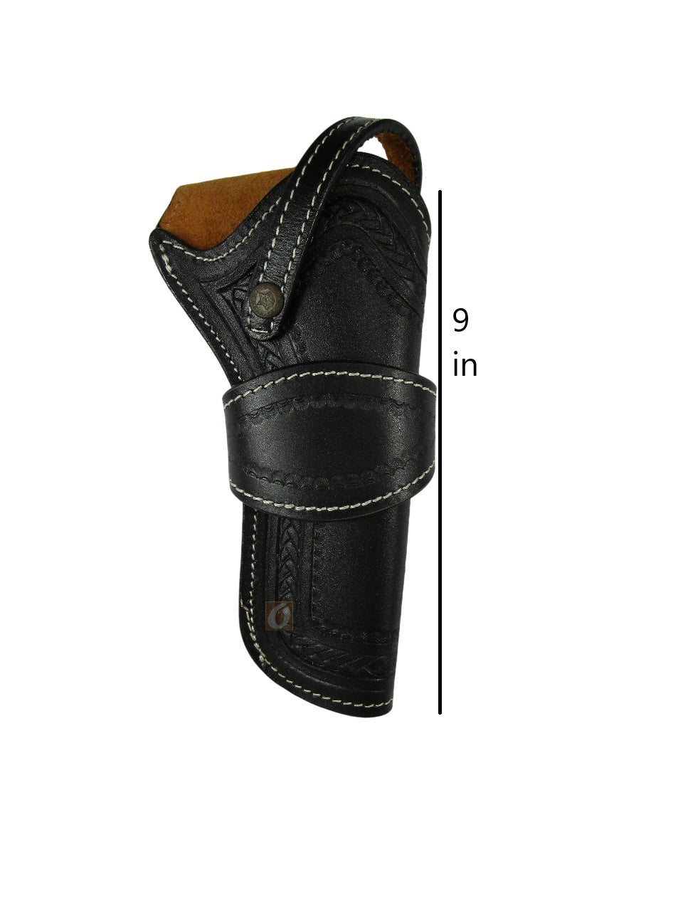 Leather holster for Taylor & Company Smokewagon Tuned 357 Mag | Tested and confirmed fit | Open bottom design | 9-inch overall length | 3-way carry strong side crossdraw FBI cant | Full-grain leather construction | Smooth draw with secure retention