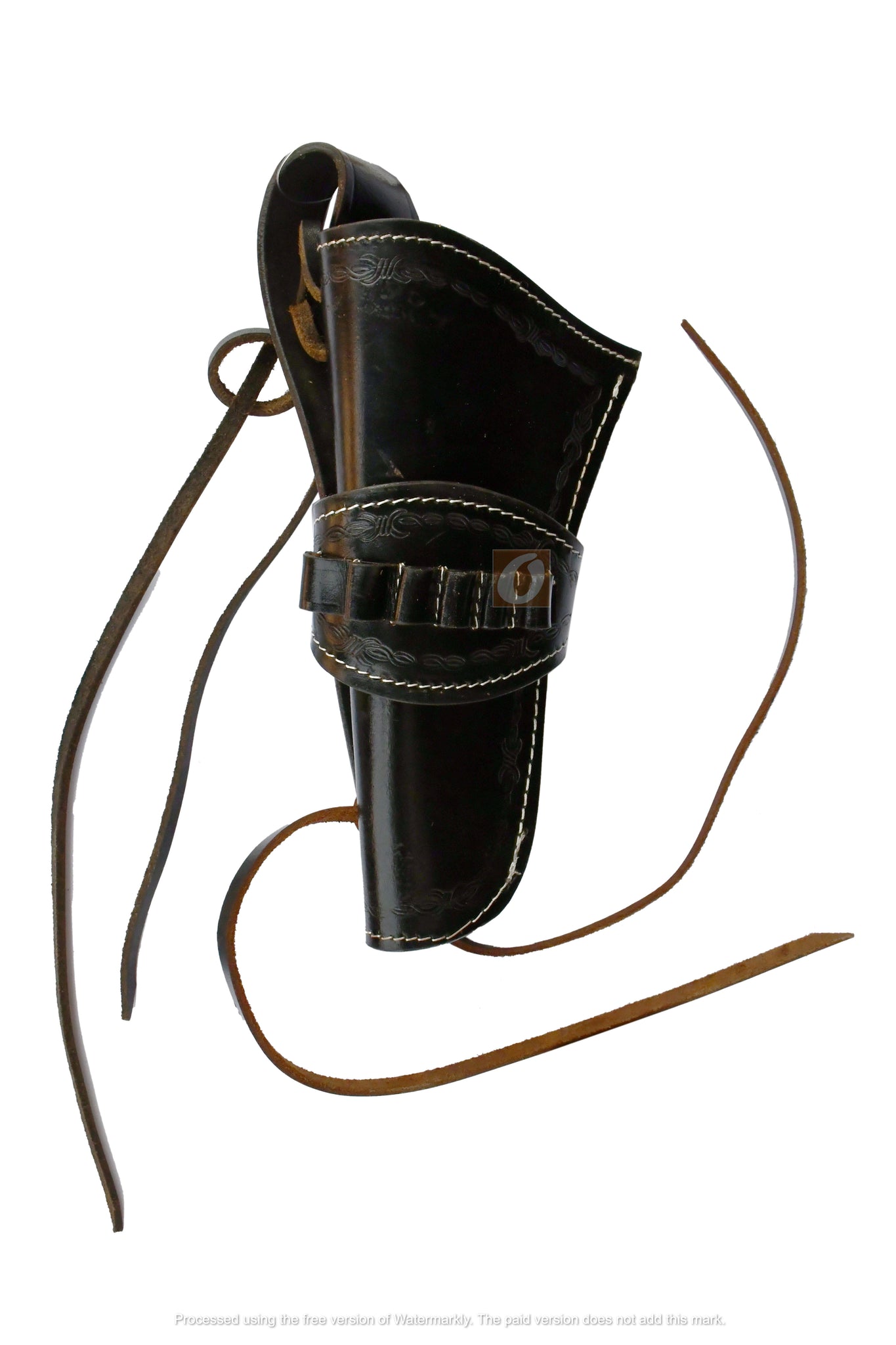 Built for those who carry with confidence. This handcrafted Western leather holster delivers classic frontier style with the strength and balance serious shooters need. Each piece is cut from genuine full-grain leather, hand-stitched in durable nylon, and detailed with traditional Western tooling. Smooth, hand-burnished edges ensure a clean draw, while the open-bottom design gives clearance for longer barrels. A tie-down strap keeps the rig steady whether you’re on horseback, a motorcycle, or working the range.